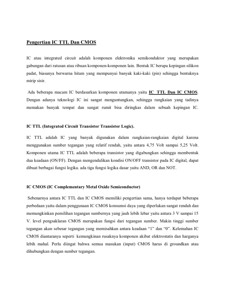 Pengertian IC TTL Dan CMOS: IC TTL (Integrated Circuit ...